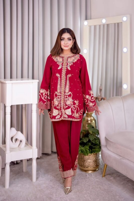 ঈদ ড্রেস (পার্ল ওয়ার্ক+ সিকুয়েন্স + এম্ব্রয়ডারি করা) পাকিস্তানি ইন্সপায়ার্ড রেডিমেড টু-পিস!!(কোর্ডস:৩৪) ঈদ মেরুন
