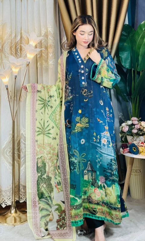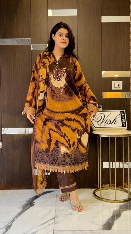 ঈদ ভাইরাল এম্ব্রয়ডারি থ্রি-পিস-পাকিস্তানি ইন্সপায়ার্ড!!(কোর্ডস:৩৩)টাইগার প্রিন্ট
