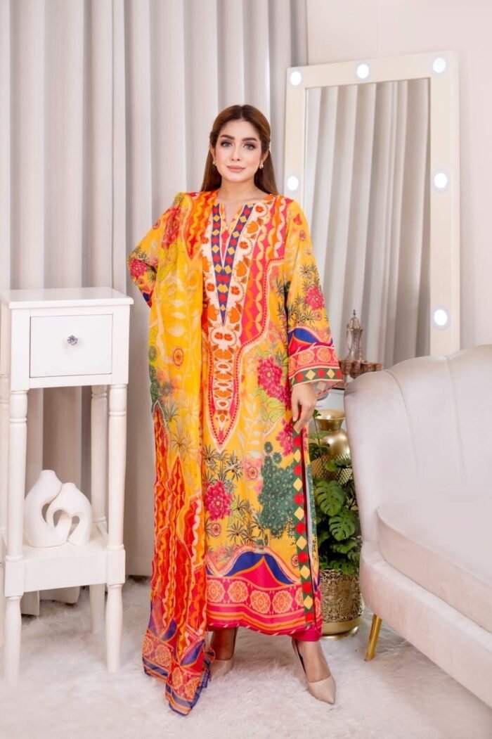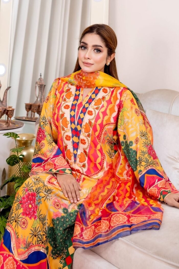 গর্জিয়াস এম্ব্রয়ডারি ওয়ার্কড পাকিস্তানি ইন্সপায়ার্ড রেডিমেড জর্জেট থ্রি-পিস!!(কোর্ডস:২৭) কালারফুল